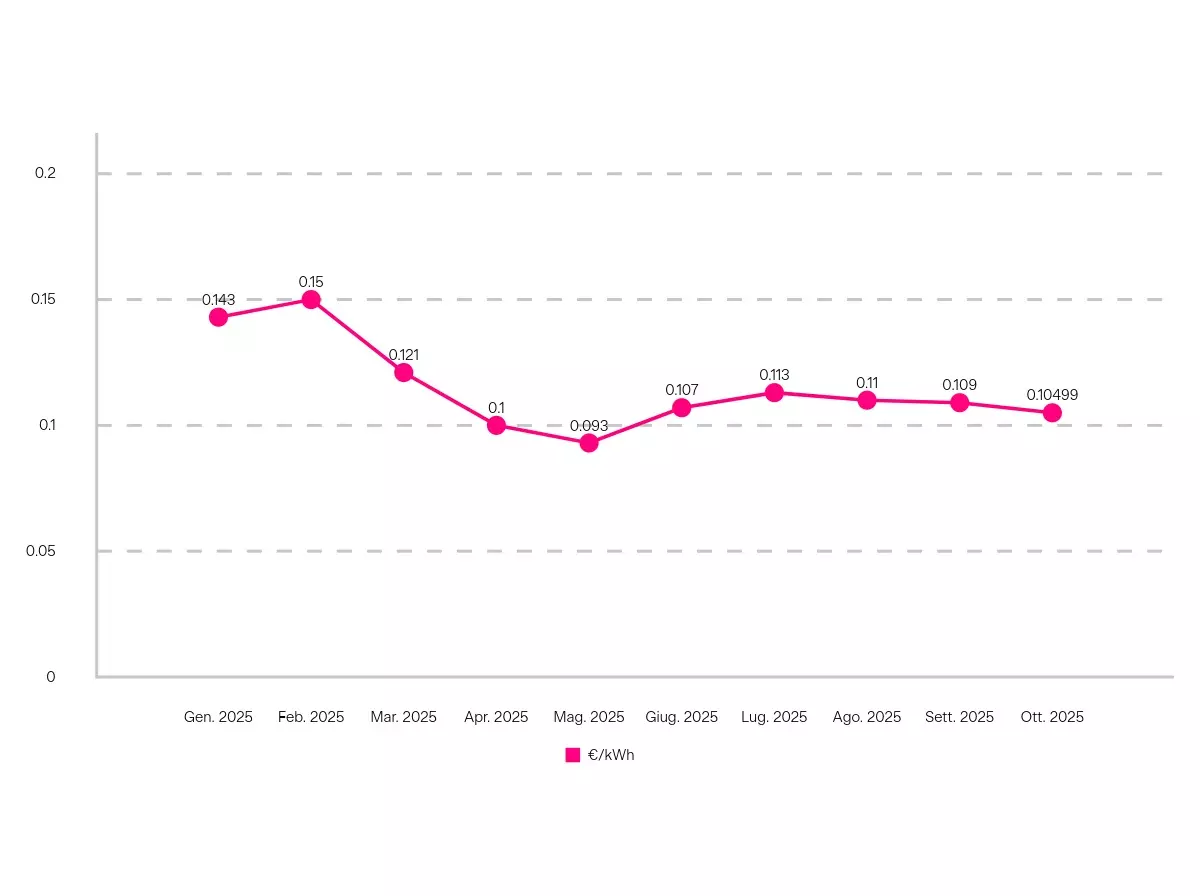 Per chi aderisce al Servizio a Tutele Graduali, per esempio, a ottobre 2025 il prezzo per la materia energia (€/kWh) è stato di 14 centesimi di euro.