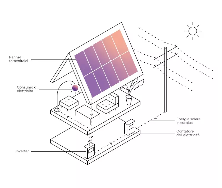 Visto che gli impianti fotovoltaici vengono collegati alla rete elettrica nazionale, non è necessario che tu ti muova in autonomia per vendere la tua energia solare: la vendita avviene automaticamente quando produci più energia di quella che consumi. Come?